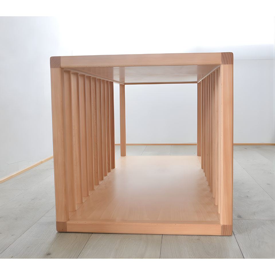園児の身体表現と遊びの探求を促す『肋木トンネル』。くぐる・またぐ・登る・ぶら下がるといった動きを引き出し、自然に体幹・バランス感覚・空間認知を育てます。木のぬくもりを感じられるデザインで、保育室の景観にやさしく馴染みます。