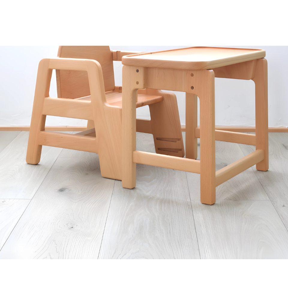 食事の自立したサイドテーブル、ワクワクベビーシリーズの椅子に装着するとテーブル付の椅子として使えます。天板の広さも給食盆程度の大きさがあり、使いやすくなっています。