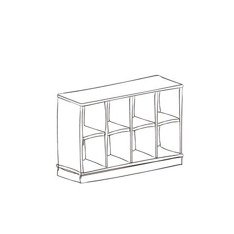 本が倒れにくく、取り出しやすいように縦の仕切り板が細かく入った本棚。絵本のサイズにあわせて、棚板の位置を調整できます。