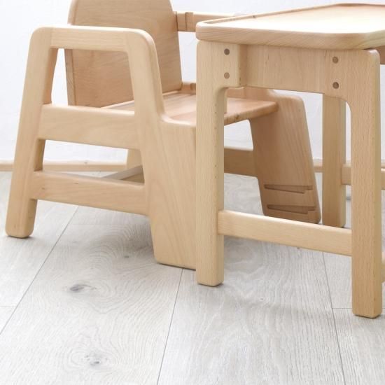 食事の自立したサイドテーブル、ワクワクベビーシリーズの椅子に装着するとテーブル付の椅子として使えます。天板の広さも給食盆程度の大きさがあり、使いやすくなっています。