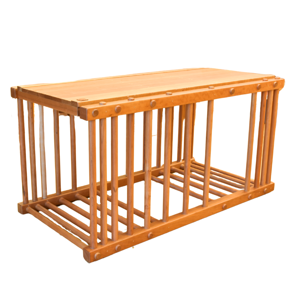 今も育児教育の世界で絶大な評価を誇る故神賀忠吾の理論が集結した木製遊具のひとつ「肋木」。