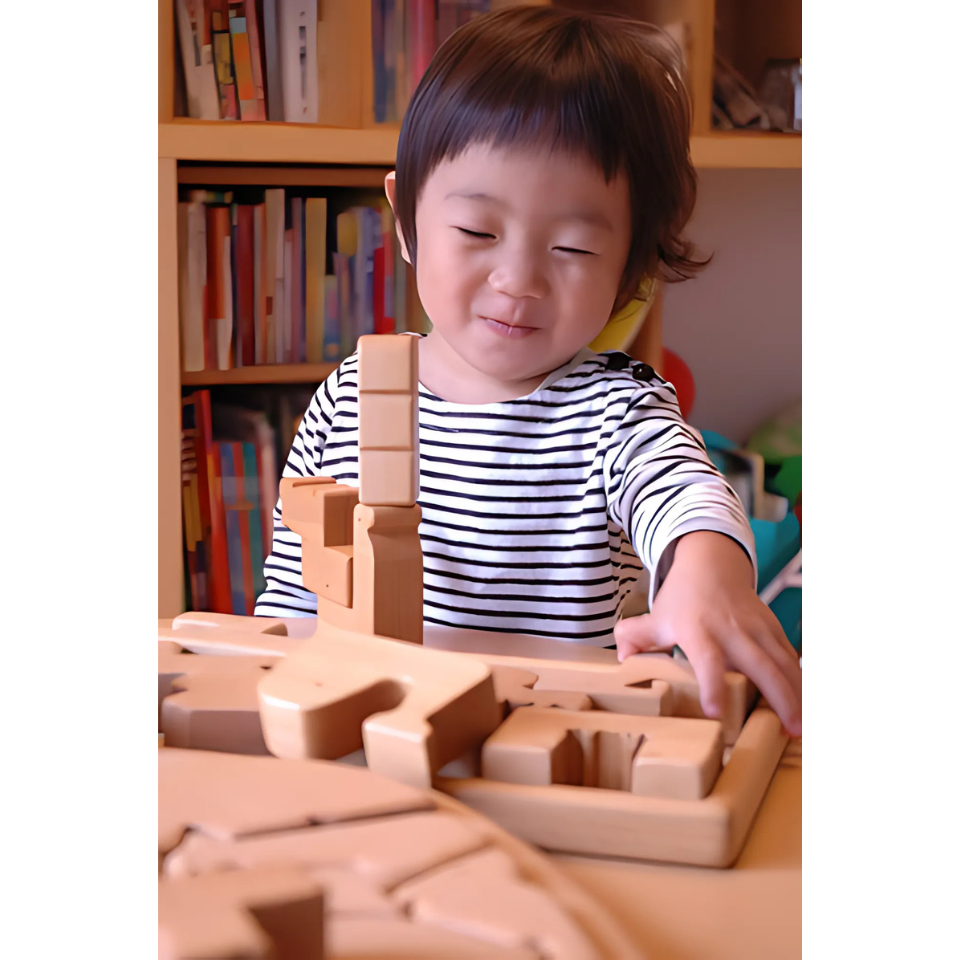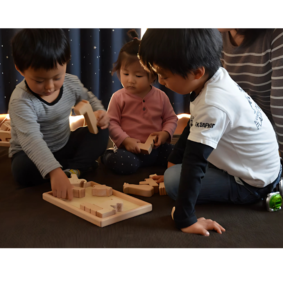 弊社積み木のLANGE(レンガ)と同基尺を使用しており、混入してつかうことができます。